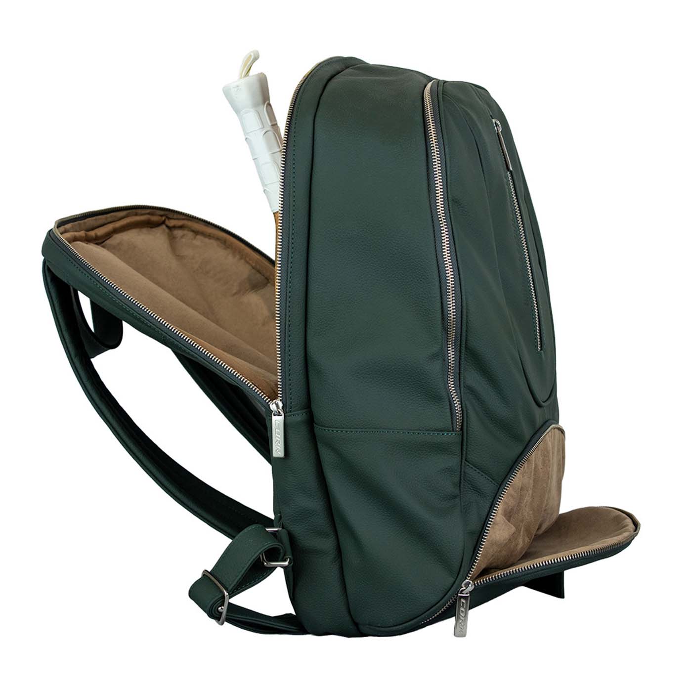 Backpack made by hand in genuine leather, with engraved CORK PADEL brand.